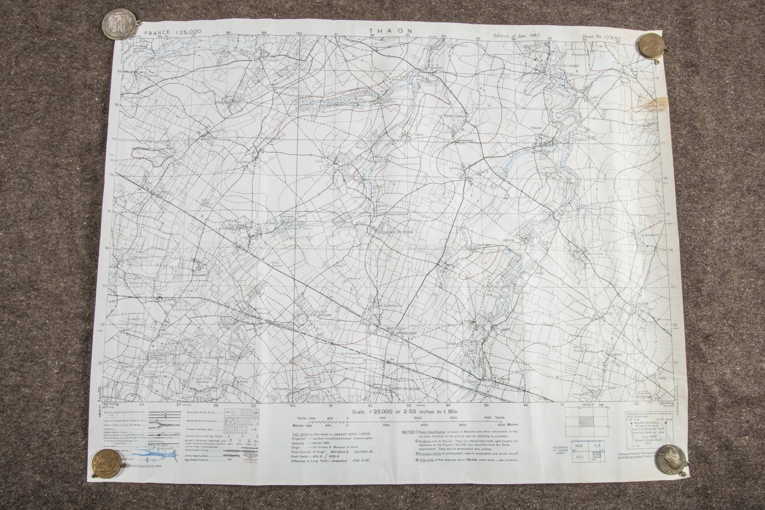 British 1:25 000 map Thaon, Bretteville, Buron, Rots, Abbaye d'Ardenne. This is a very good British Normandy map which shows the full area of operation of the 12th SS Panzer Division. The area depicted is some of the most hard fought over grounds in Normandy with some of the most Iconic photographs in the war taken there. Hard to find region in good condition!