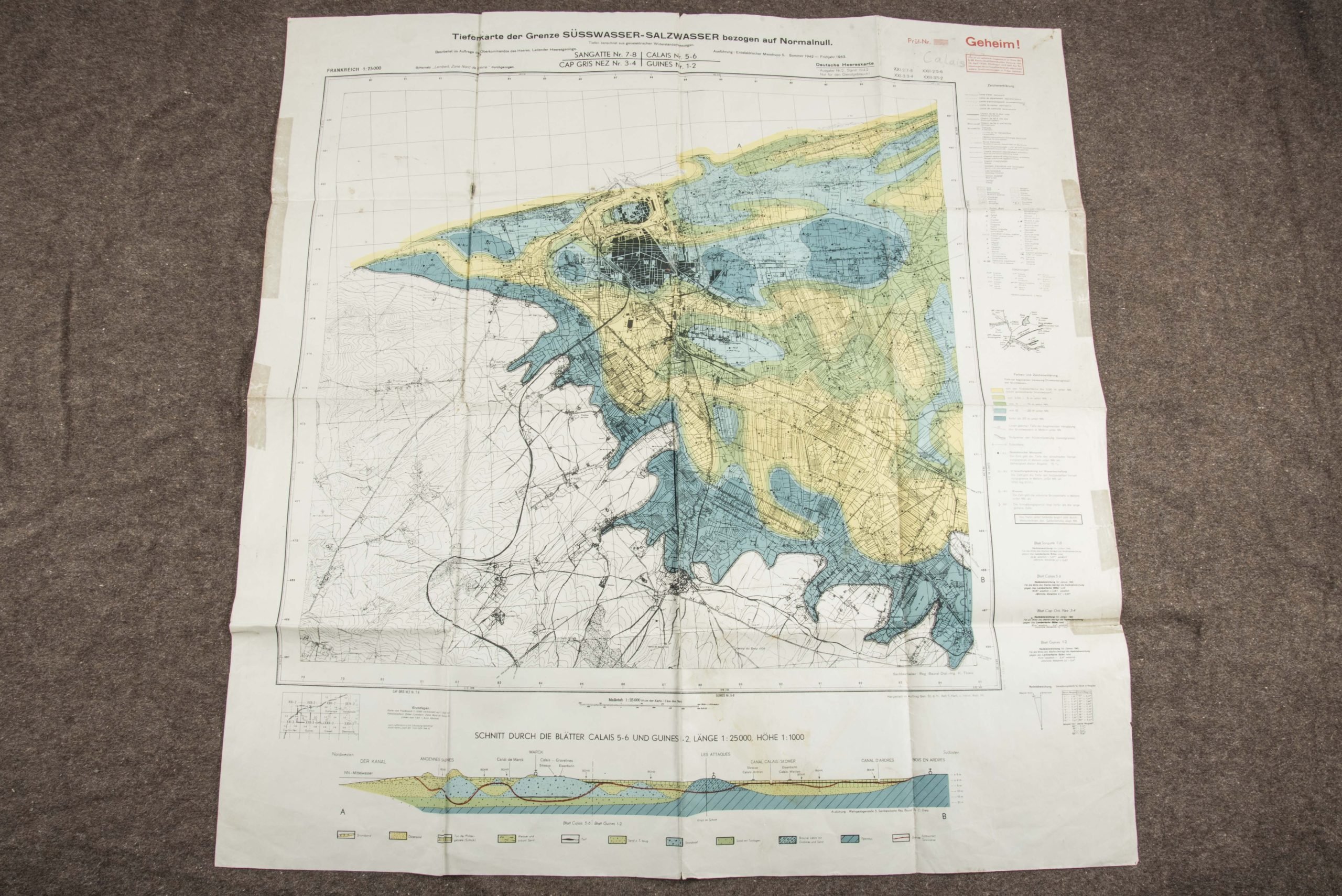 German 1:25 000 map Calais, Geheim dated summer 1942. This map draws the salt and fresh ground water on the map.
