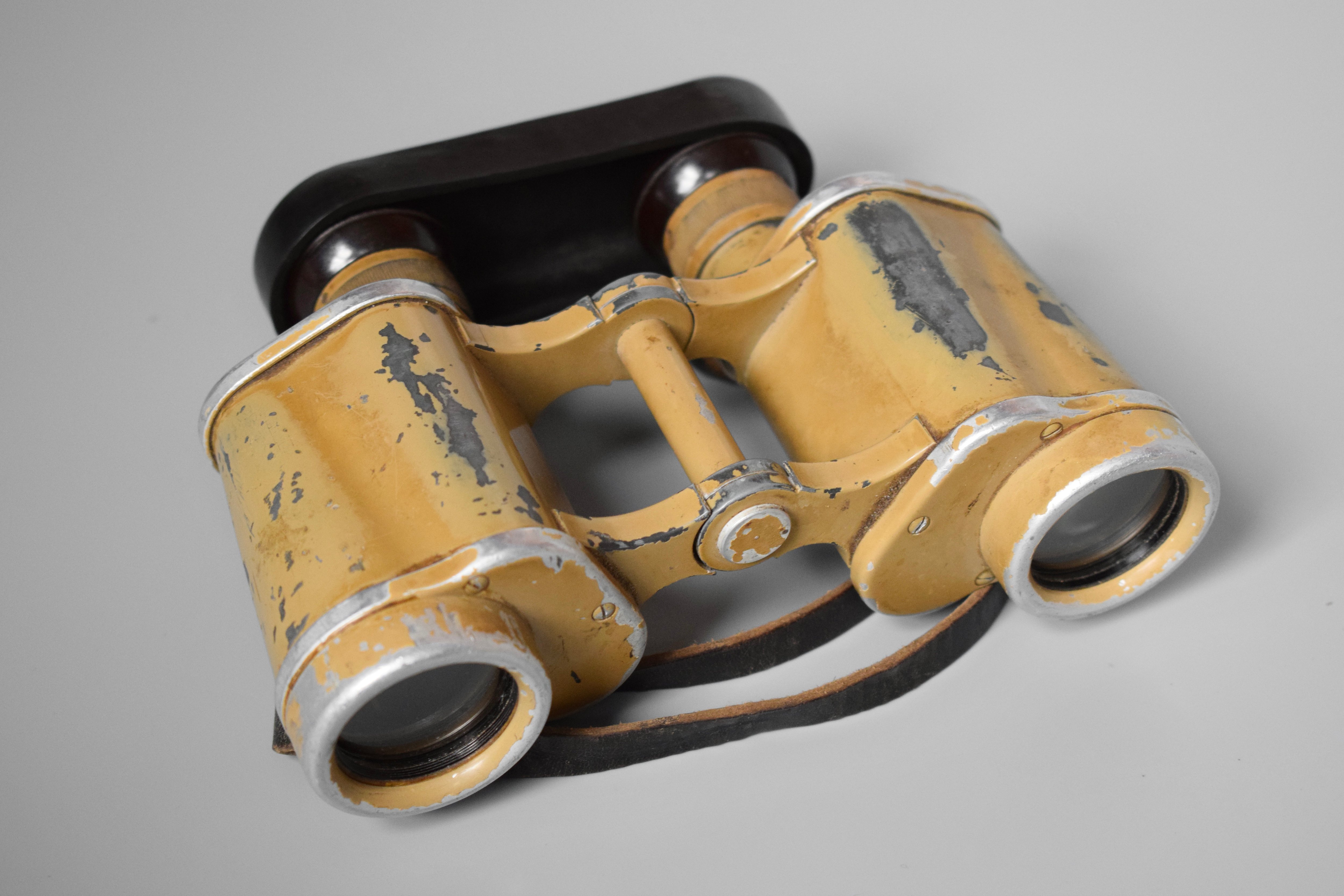 A very nice and super honest as found example of the mid to late-war 6x30Dienstglasfield binoculars, finished in the original factory-applied tan paint.They are clearly maker coded 'cag' forSwarovski, Tirol, Austriaand still come complete with their original leather neck strap - with matching tan painted studs - and correct rubber ocular cover.The optics are clear and usable, as well as still retaining theStrichplatterange finding reticule internally!