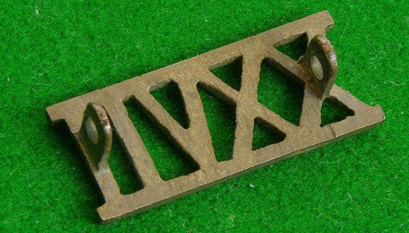 Scarce brass shoulder title, ' XXVII' with two integral lugs to the reverse worn by the 27th. Light Cavalry.
