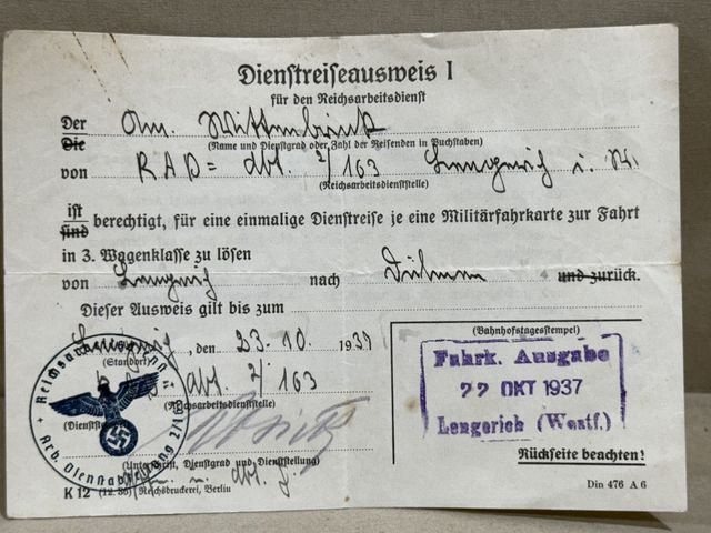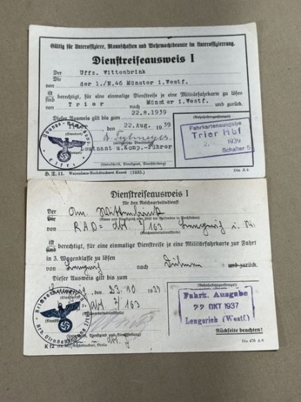 Original Pre-WWII German Official Travel Passes, Heer NCO and RAD Dienstreiseausweis