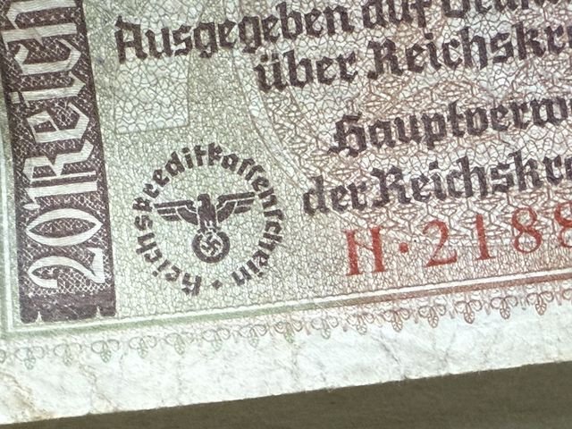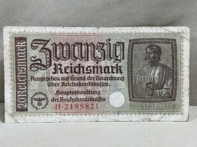 Original Nazi Era German 20 Reichsmark Note