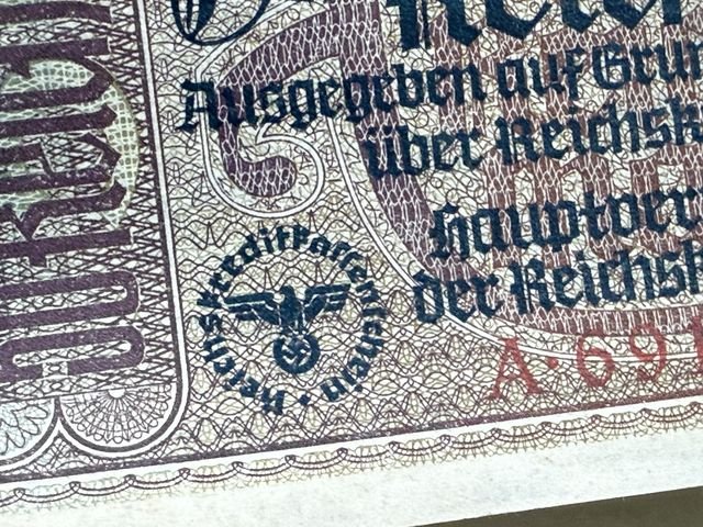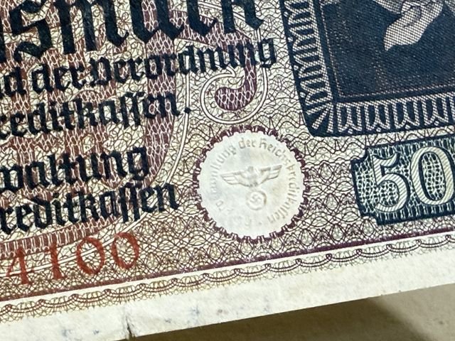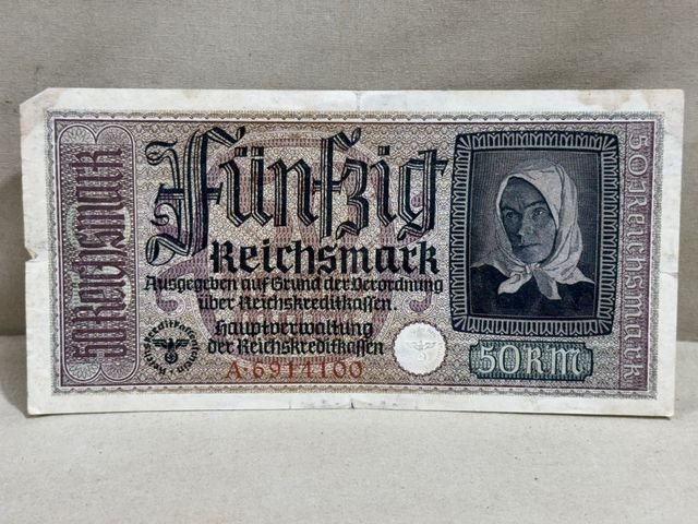 Original Nazi Era German 50 Reichsmark Note