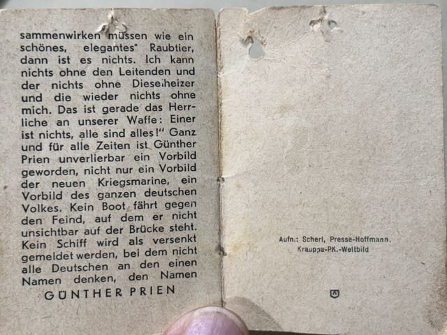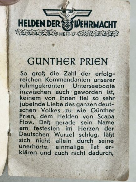 Original WWII German WHW Donation Booklet, Ritterkreuztr‰ger G¸nther Prien