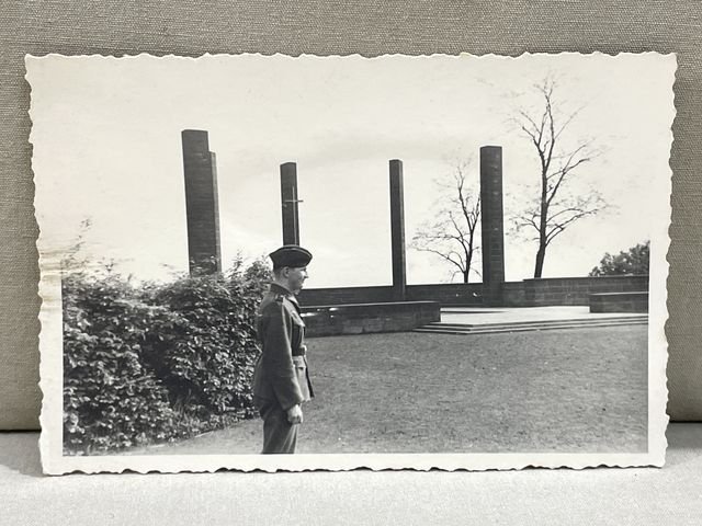 Original WWII German Heer (Army) Soldier by Monument Photograph