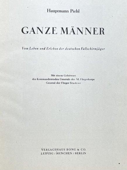 Original WWII German GANZE MƒNNER Book, Life and Experience of the Fallschirmj‰ger