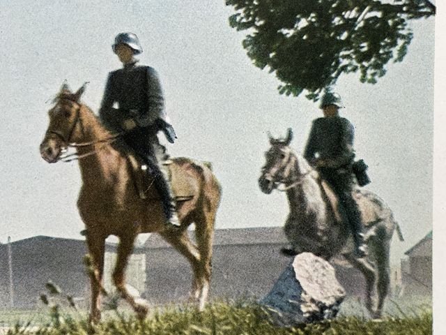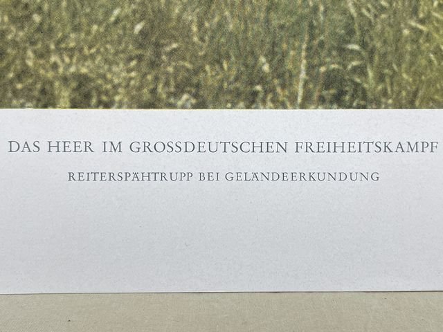 Original WWII German Military Themed Color Print, CAVALRY PATROL THE ROAD