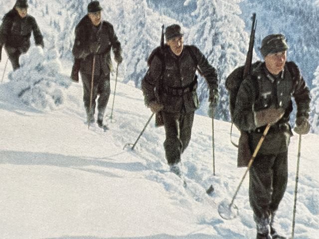 Original WWII German Military Themed Color Print, GEBIRGSJΓGER IN THEIR ELEMENT