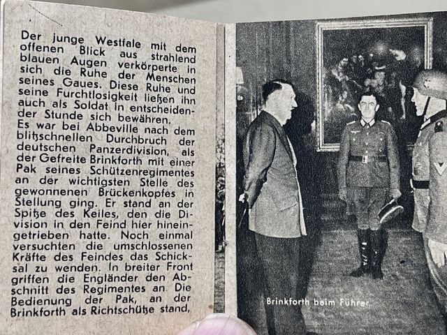 Original WWII German WHW Donation Booklet, Ritterkreuztrโฐger Hubert Brinkforth