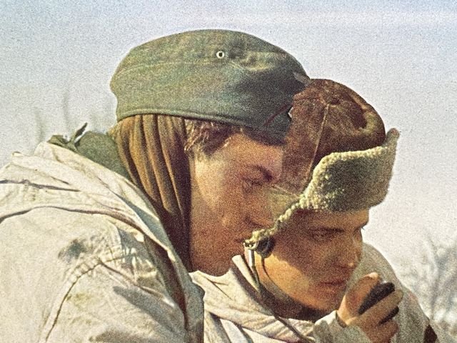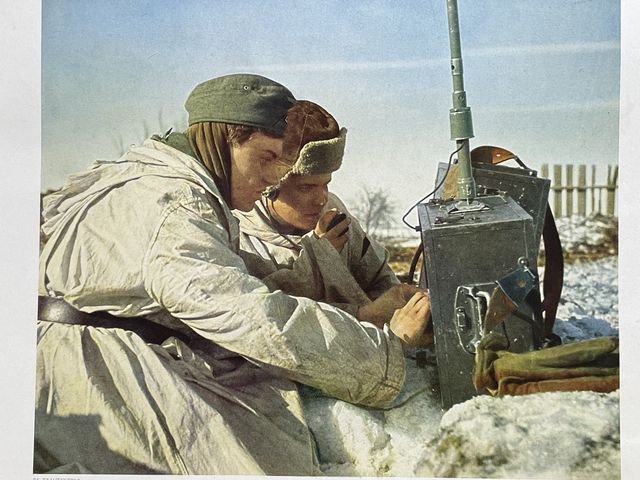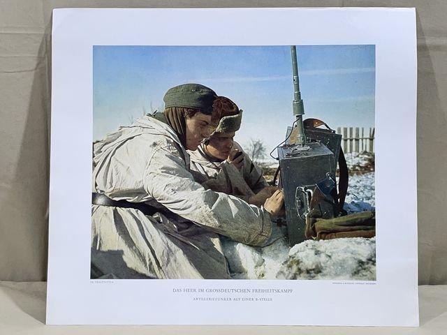 Original WWII German Military Themed Color Print, ARTILLERY RADIO MEN