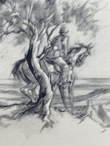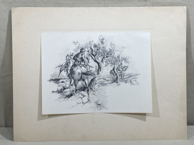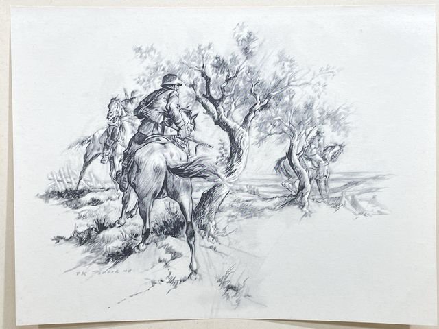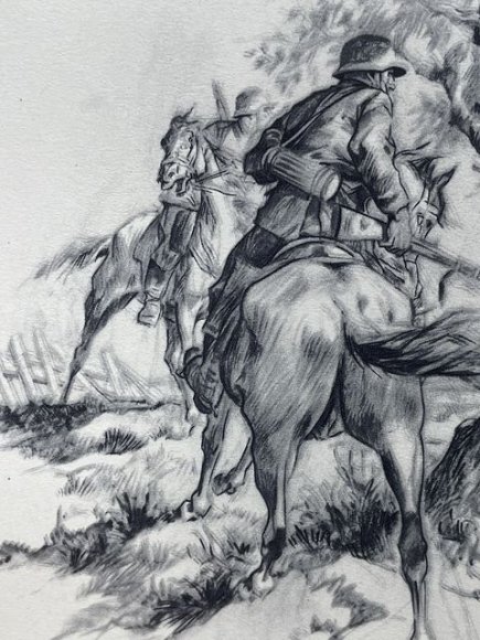 Original WWII German Print of a Fantastic Pencil Drawing, by a PK Soldier