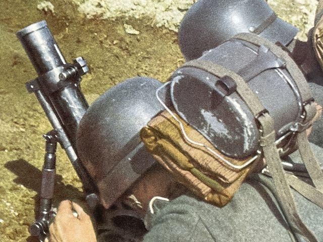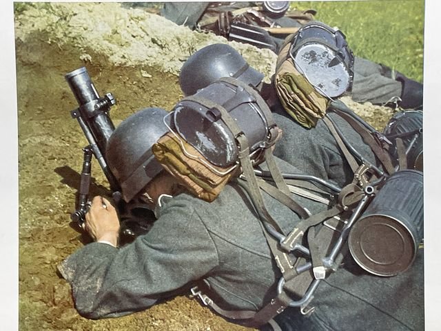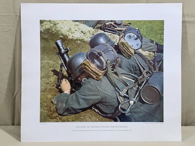 Original WWII German Military Themed Color Print, LIGHT INFANTRY MORTARS