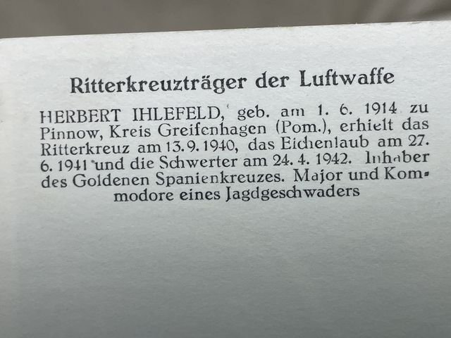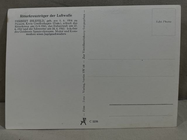 Original WWII German LW Personality Postcard, Major Ihlefeld