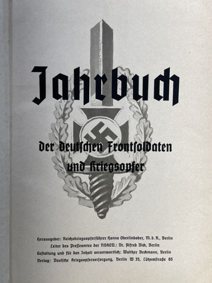 Original Pre-WWII German NSKOV Year Book, Jahrbuch der deutschen Front und Kriegsopfer