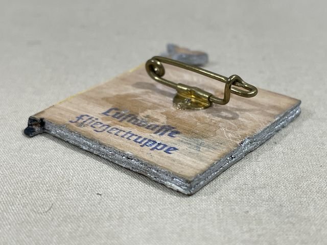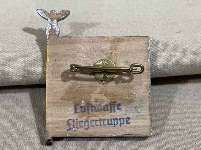Original Nazi Era German Hand-Painted Wooden Flag Pin, Luftwaffe Fliegertruppe