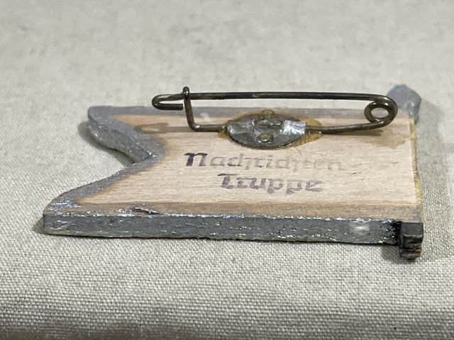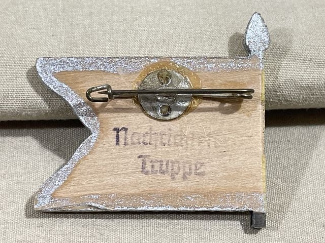 Original Nazi Era German Hand-Painted Wooden Flag Pin, Nachrichten-Truppe
