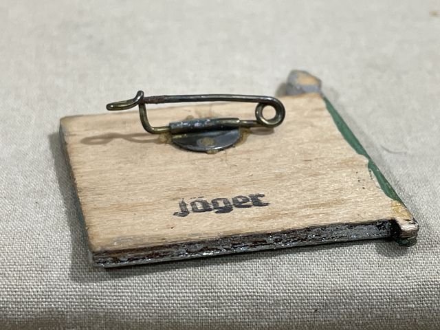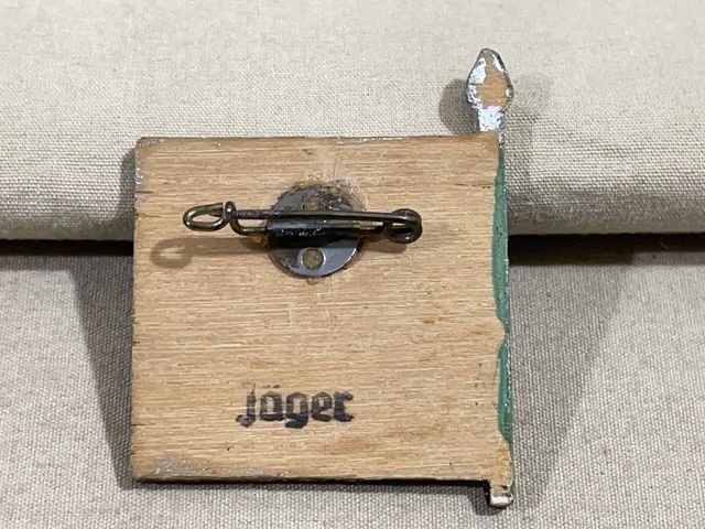 Original Nazi Era German Hand-Painted Wooden Flag Pin, JΓ°ger