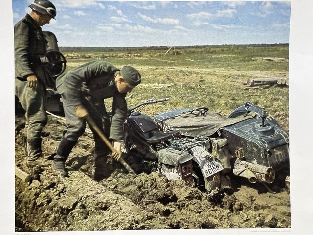 Original WWII German Military Themed Color Print, WORKING THROUGH THE MUD