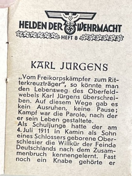 Original WWII German WHW Donation Booklet, Karl JΒ³rgens