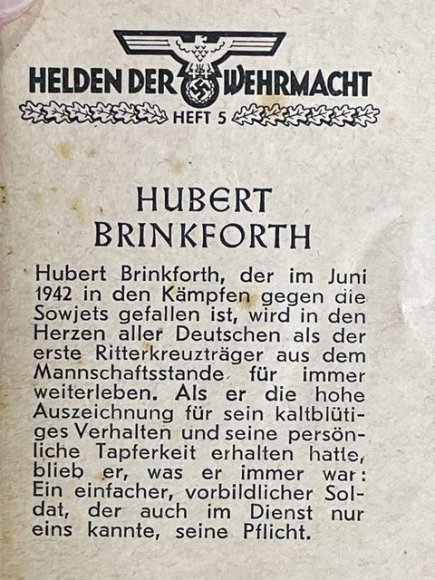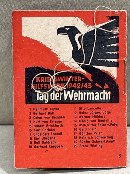 Original WWII German WHW Donation Booklet, Hubert Brinkforth