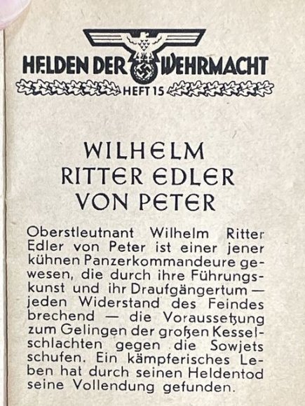 Original WWII German WHW Donation Booklet, SP Gun Officer Ritter Edler von Peter