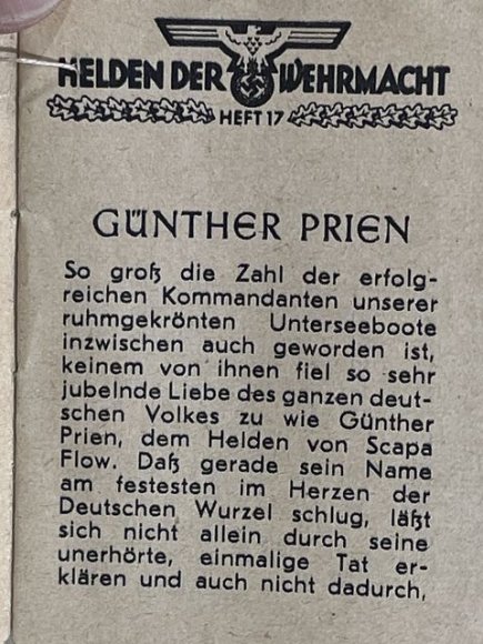 Original WWII German WHW Donation Booklet, Ritterkreuztr‰ger G¸nther Prien