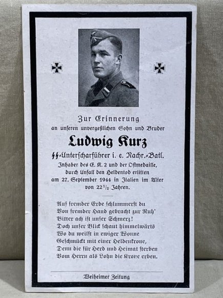 Nice 100% original remembrance card for a SS-Unterscharführer in a signals unit.