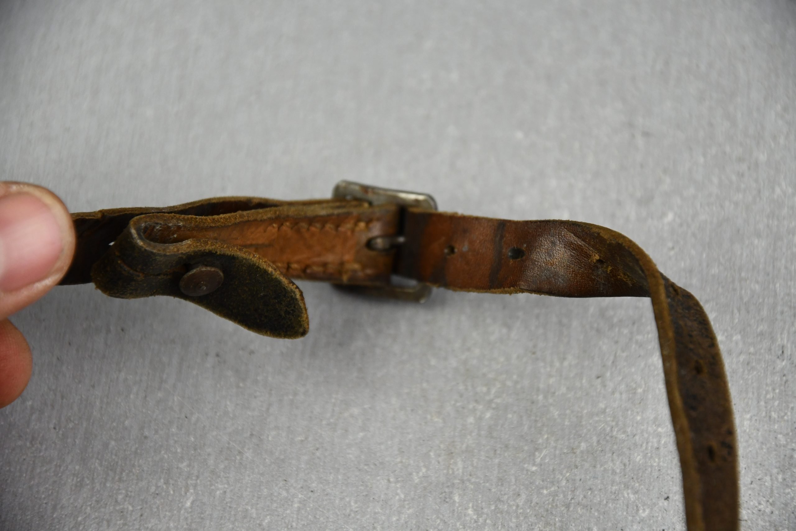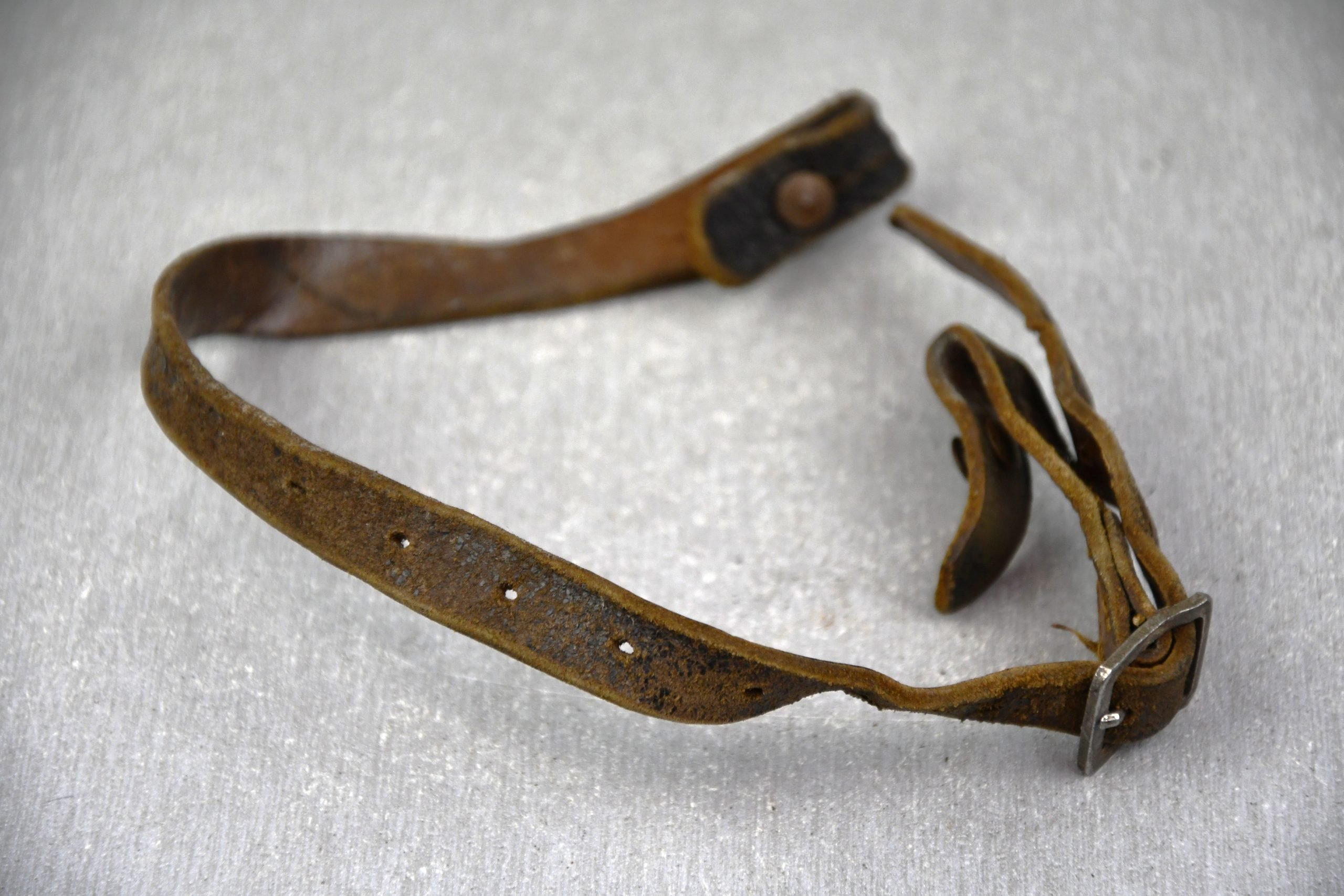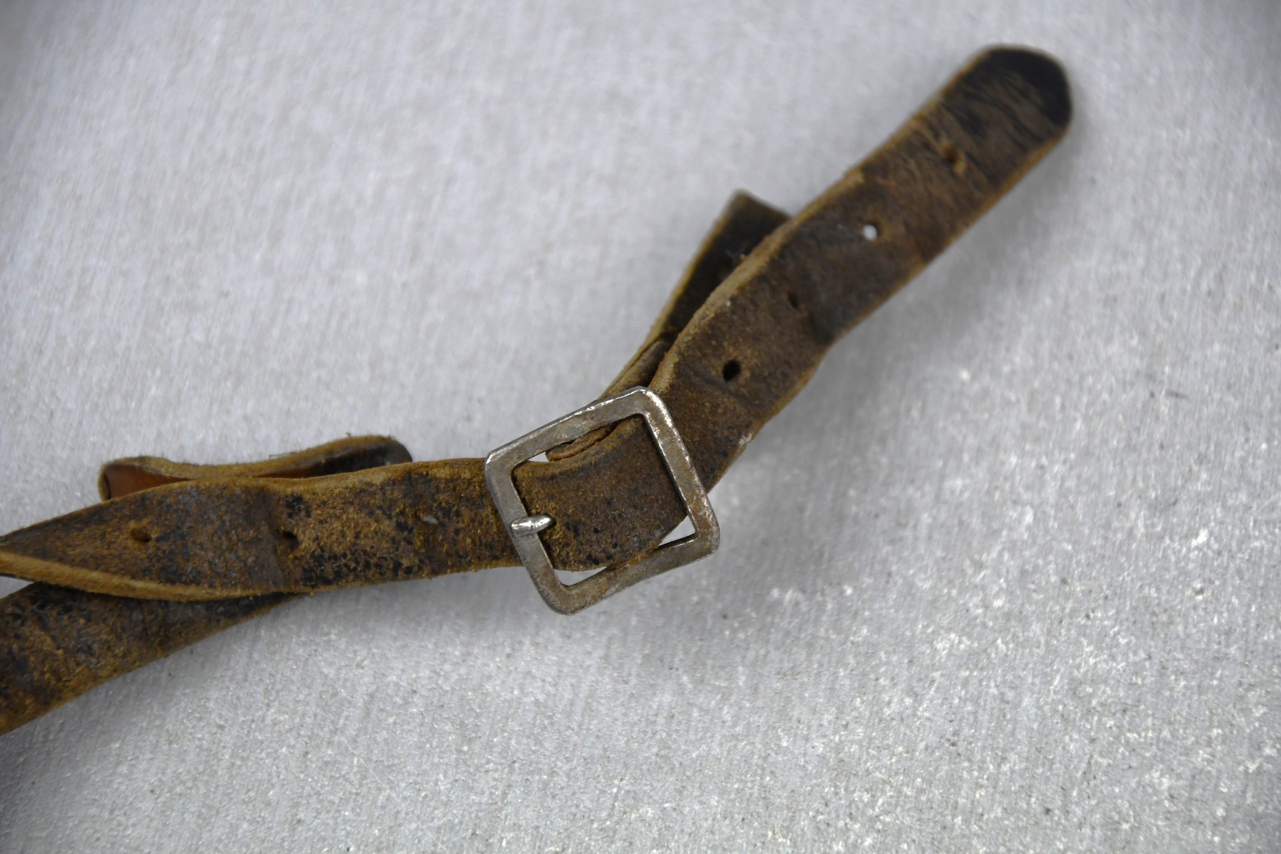 Genuine helmet chin strap in light worn condition. Steel buckle. Maker marked with RBNr. ?/??65/0002.