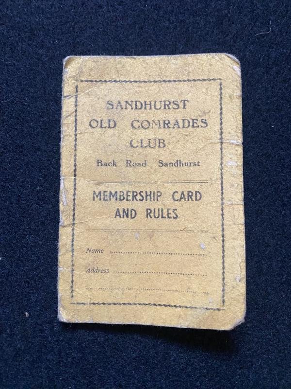 This is a Sandhurst Old Comrades Club Membership card.Check out our YouTube channel below.https://m.youtube.com/results?sp=mAEA&search_query=chase+militaria+