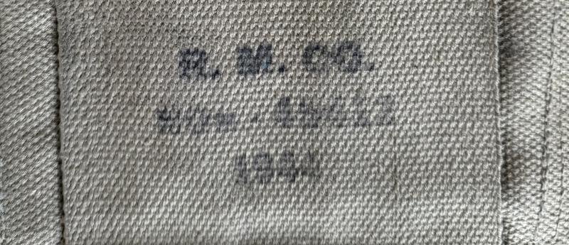 U.S.M.C. Three Pocket Thompson Magazine Pouch. Executed in khaki webbing and clearly marked U.S.M.C. on the rear of the pouch. Makers marked R.M. Co. and 1944 dated. The pouch is in overal nice used condition These 30 round magazine pouch are also used by the US Army. Increasingly hard to find these days.