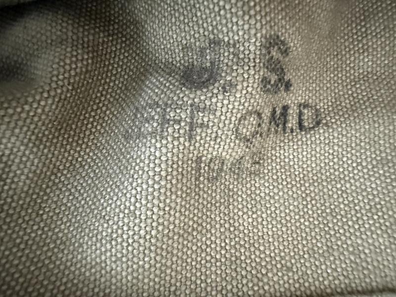 U.S. M1 Carbine Carrying Holster. Designed to wear the M1 Carbine 'pistol-style' on the right side of the belt. The holster is executed in khaki canvas and makers marked Jeff Q.M.D. and dated 1943. Marked U.S. on the front. In unissued and mint condition.