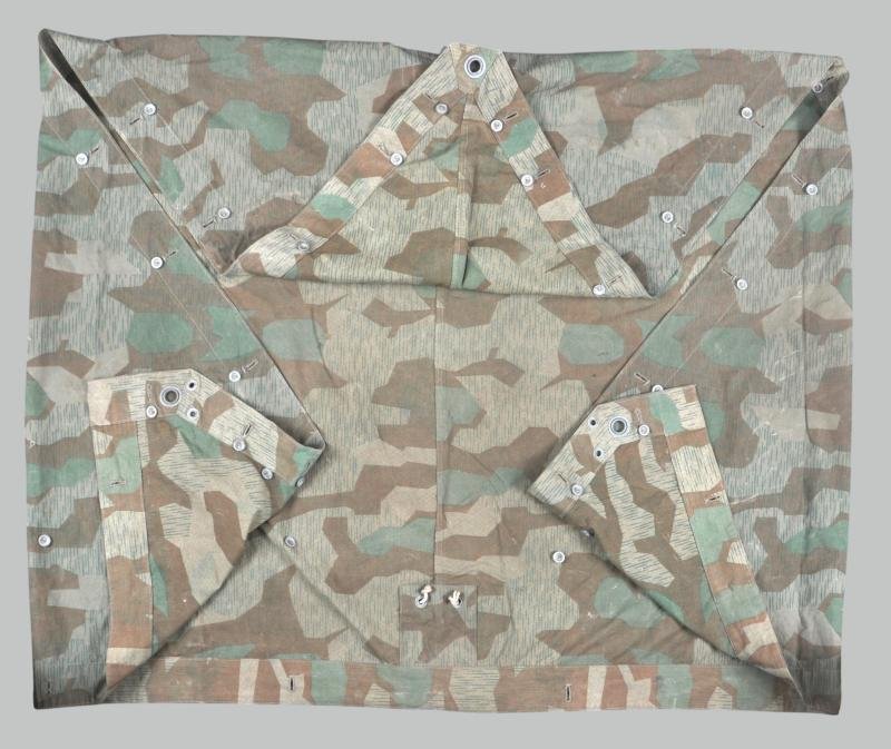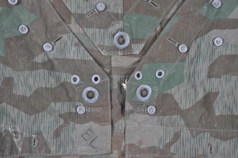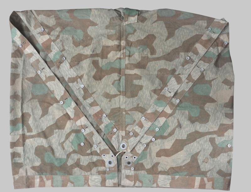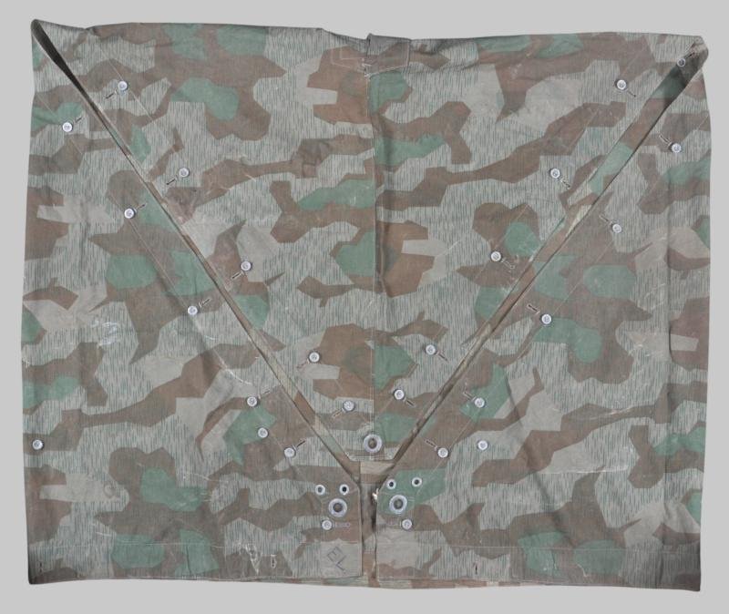 Mid to late war splinter camouflage zeltbahn with good strong colours on both sides & all buttons still present.No unsightly rips or tears . Faint 'Kassel' maker mark to lower edge.