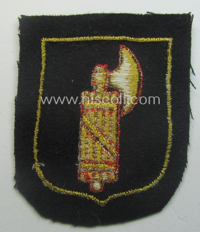 Italian, Waffen-SS 'volunteer' arm-shield as was specifically intended for usage by soldiers of the: '29. Waffen-Grenadier-Div. der SS' ('Italienische Nr. 1' or: 'Legione SS Italiana') that comes in a 'virtually mint- ie. unissued', condition