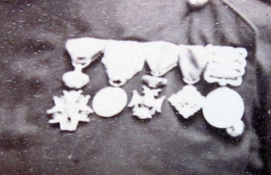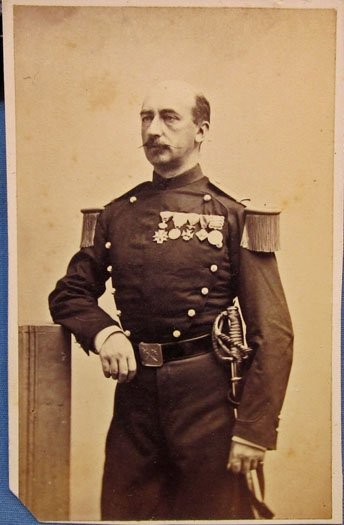 Original period manufacture. Sepia image, named on the reverse. Well decorated Lancer officer, Legion d'honneur, 1860 Italy Campaign, unk, unk, British Crimean campaign medal.