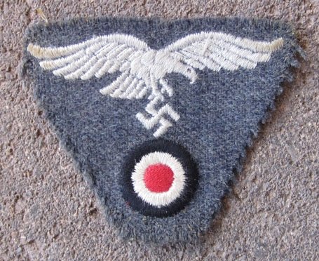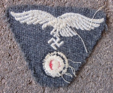 Original period manufacture. Cotton embroidery on Luftwaffe blue wool, removed from a hat.