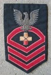 Original period manufacture. Silver wire embroidered eagle on dark blue wool, rank of Chief Pharmacist Mate.