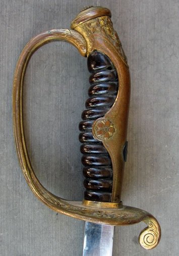 Japanese WWII Army Company Grade Officer Dress Sword, Silver Family Mon