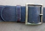Original period manufacture. Very sound, brown pliable leather with a single prong brass frame buckle. Clear markings on the reverse as shown. Scarce original belt.