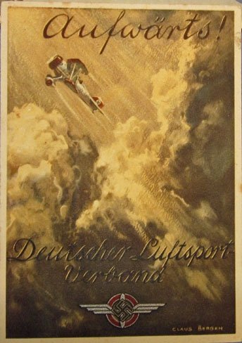 Original period manufacture. Full color image with Deutsches Luftsport Verband emblem at the bottom. Period Feldpost message on the reverse, Konigsberg cancellation 1940.