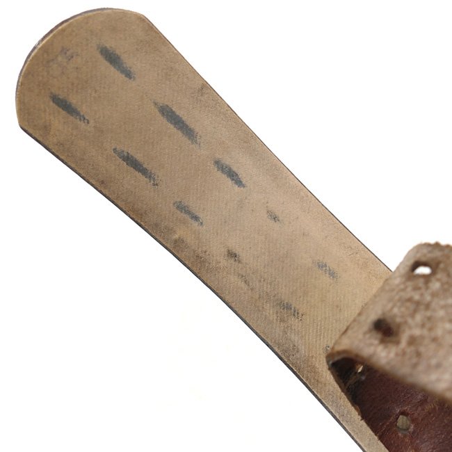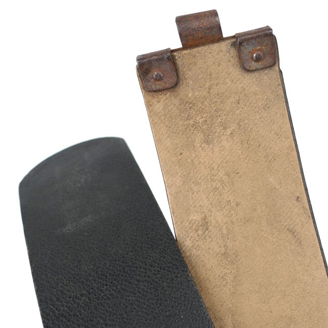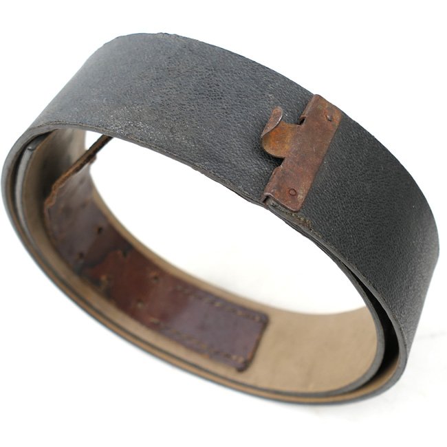 Wehrmacht (Heer)/SS Late War 'Ersatz' type Belt (Koppelriemen). 95cms long black simulated leather (Presstoff) construction belt. The belt is not visible maker marked or dated. Rare late war belt in good condition!