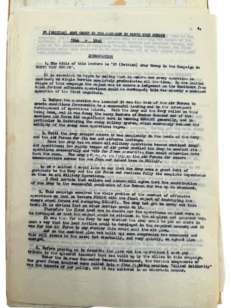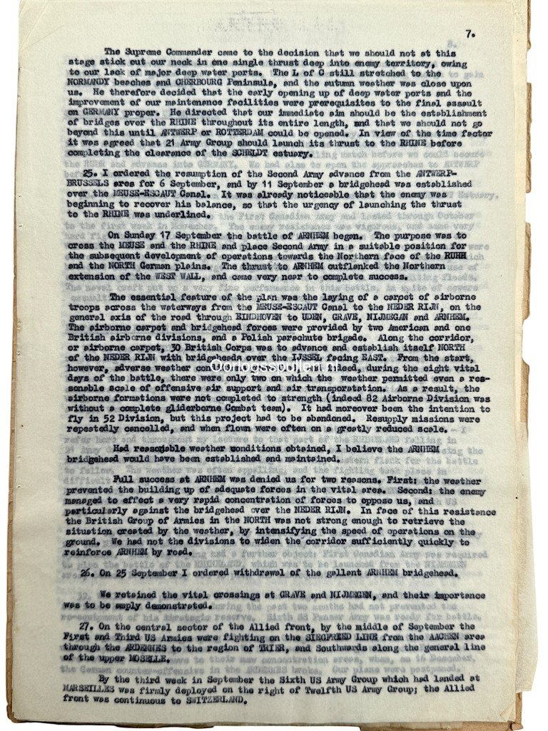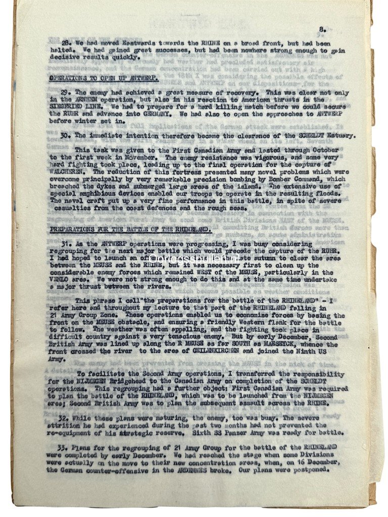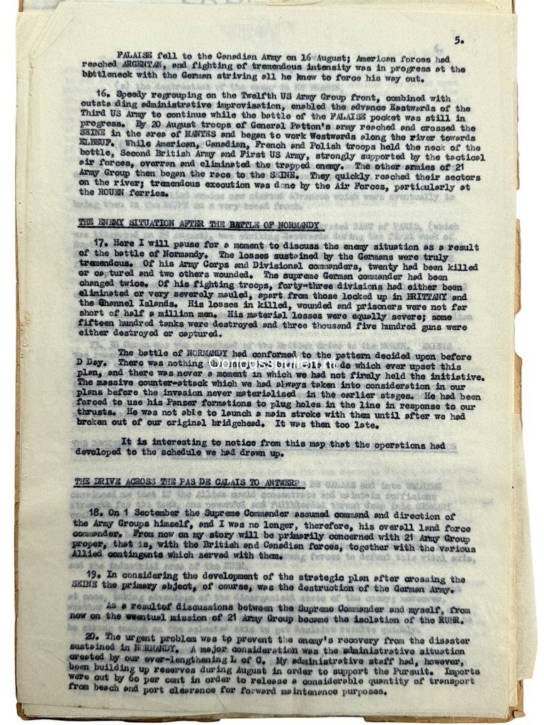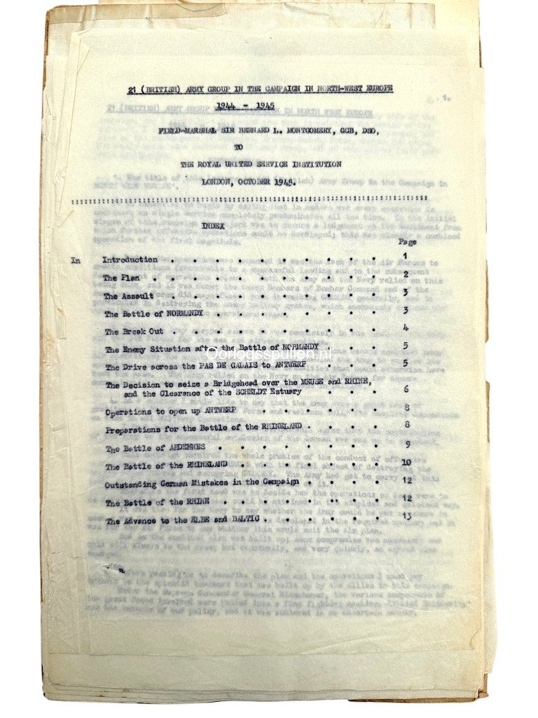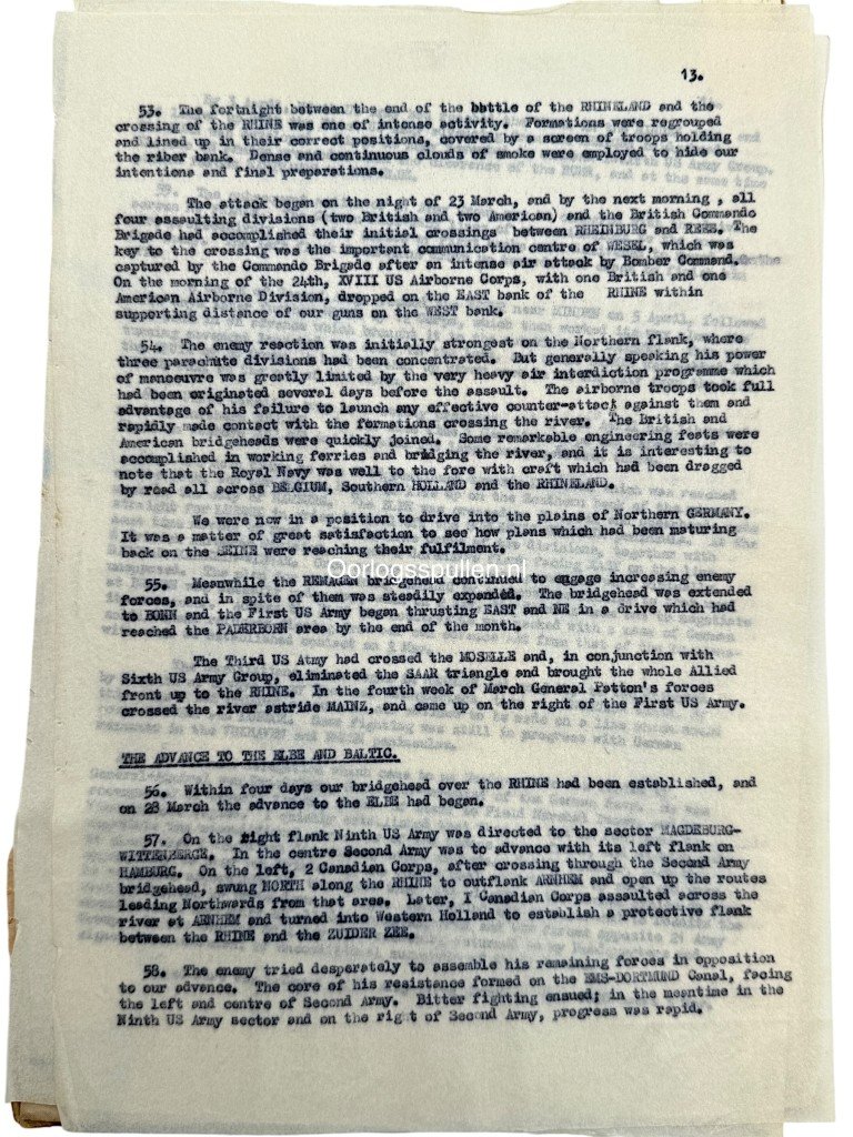 Original 1945 British military report, written by Field Marshal Sir Bernard L. Montgomery