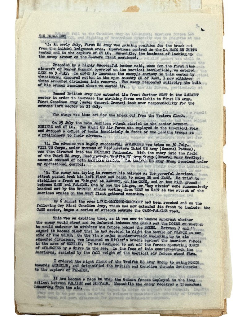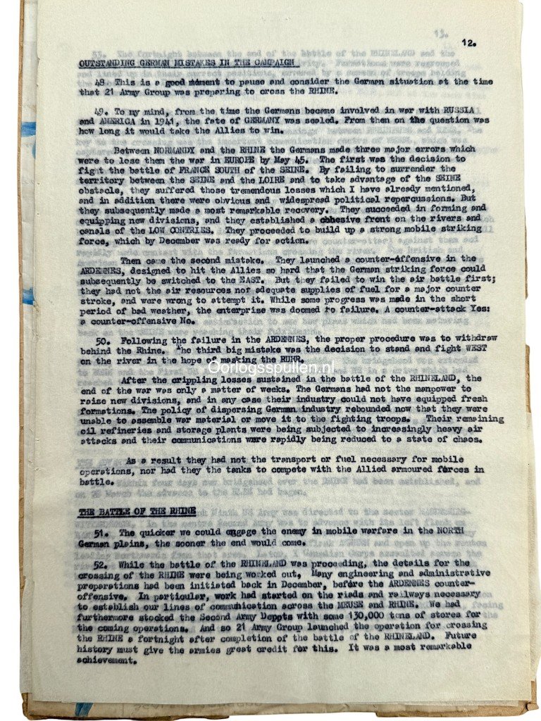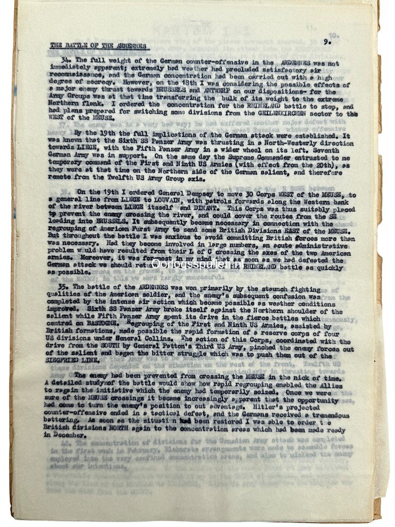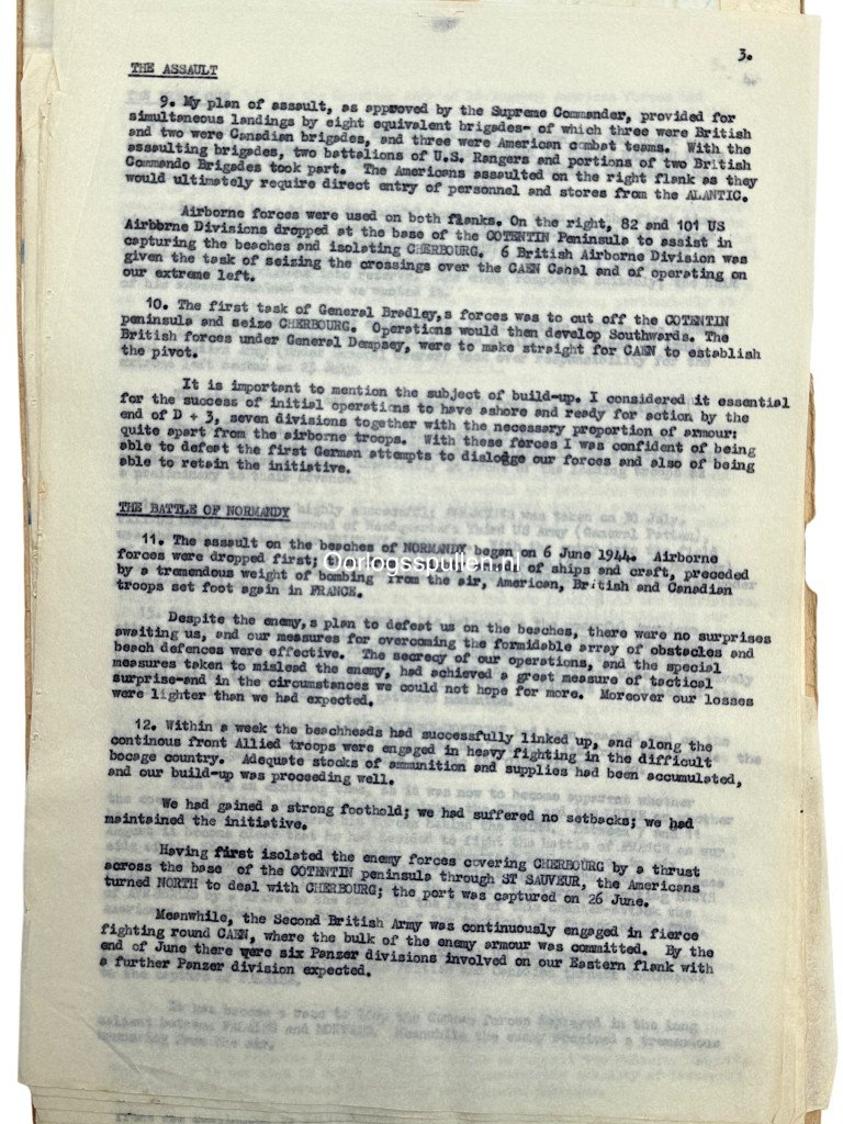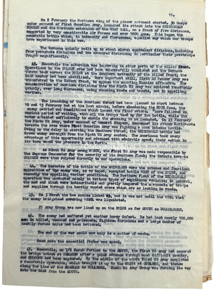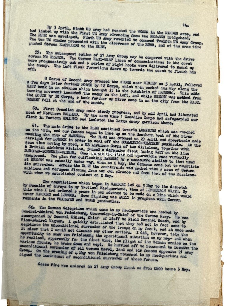 Original 1945 British military report, written by Field Marshal Sir Bernard L. Montgomery
