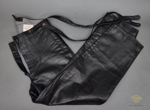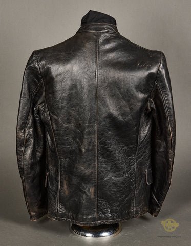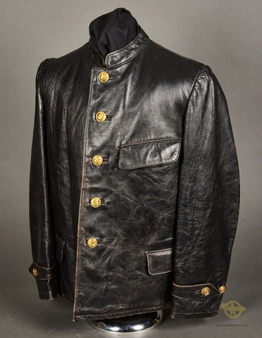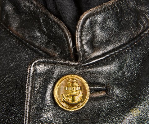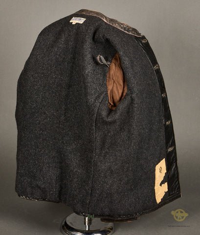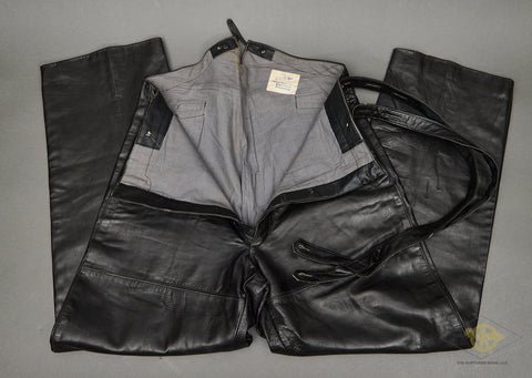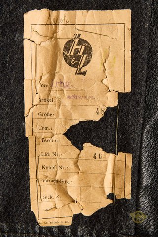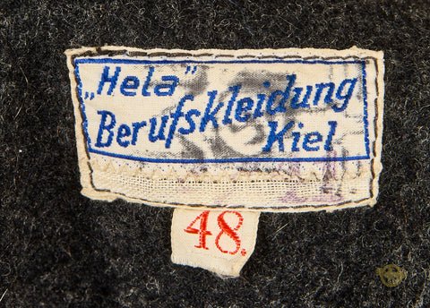 Fantastic Kriegsmarine Foul Weather Jacket and Pants-Or you cold also use them for an SS Panzer display as they are identical (except for buttons). Each piece in this set is in fantastic condition, possibly even unissued. Starting with the coat, which has a five button closure with all of the gilt finished, navy anchor buttons present and maker marked plus marked 'Extra Fein'. There are waist pockets and a single breast pocket on the wearers left side. There are adjustable cuffs, each having the same button as the closure. The interior is fully lined in dark grey wool which is excellent. There is a single pocket inside, on the wearers right side. The original makers paper tag is still attached on the lower left. It is mostly intact and has lots of cool info. The neck also has a maker tag. The maker is listed as 'Hela' Beruskleidung of Kiel. The size is listed as 48. The coat is a size medium. The pants are the same black leather. There are hip pockets and even the original black leather suspenders are present. There is a four button fly with a metal hook at loop at the waist. There is a cinch strap at the back. The interior is fully lined in light grey cloth. There is a tag on the inside which has the maker info as well as the size (52) and date of production, listed as 4.IX.1941. The maker is Rudolf Hinne, Prossnitz. The waist is a 36 and the legs are 44' long. Excellent!Please note that any 'accessories' (i.e. medals, badges, belts etc.) are NOT included unless stated in description!