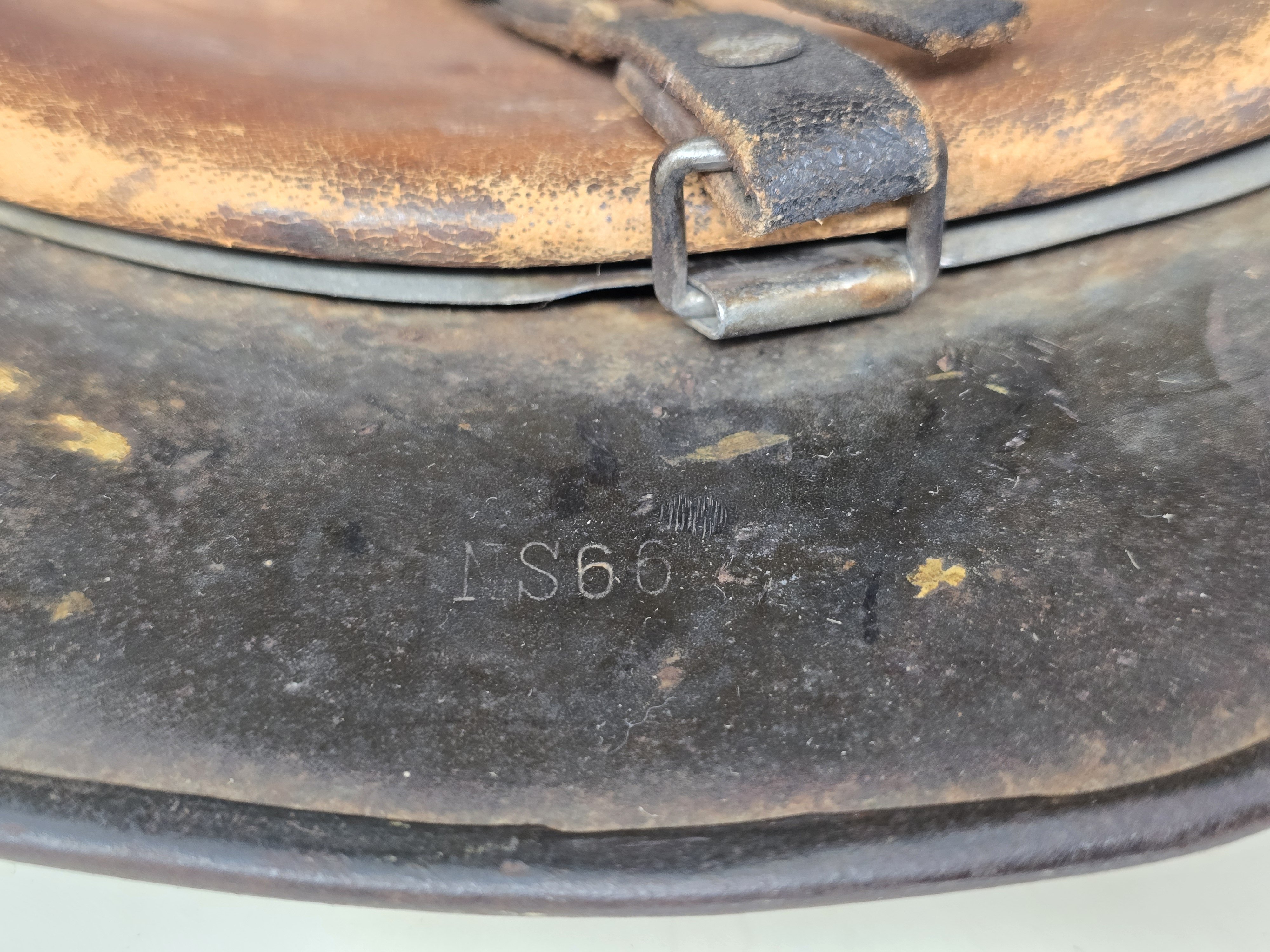 This Tan Camo M40 DAK helmet is an NS66, #DN46. The helmet shows a full tan camo finish atop the issue M40 finish. A single Heer decal is visible under the camo at about 80% present. The camo finish shows heavy sun baking and general weathering, with patina. There is an area of patina at the top that has caused a slight rose color to the tan. It is unknown what caused the patina, but sitting on its top in some kind of vehicle fuel leak is possible. The liner and chinstrap are fully intact, with some heat and sweat wear present. The helmet is a striking, complete and untouched example of a DAKβ and depending on where capturedβ a 'Southern Front' example. An outstanding battle helmet, COA accompanies.