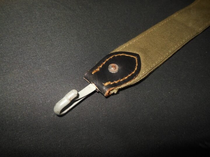 You are bidding on a SUPERB and UNISSUED example of a WW2 German Wehrmacht M31 Bread Bag Strap! These were issued to most personnel during the war, but were usually discarded, or used as a foliage strap on the helmet or as an accessory strap.Made of cotton, leather and steel, this Bread Bag Strap is an EXCELLENT example! Though there are some slight marks from storage, it is VERY solid with no damage! Some slight corrosion on the metal fittings, but nothing that detracts. Features a prominent manufacture stamp.Would make a FANTASTIC addition to any collection or display!
