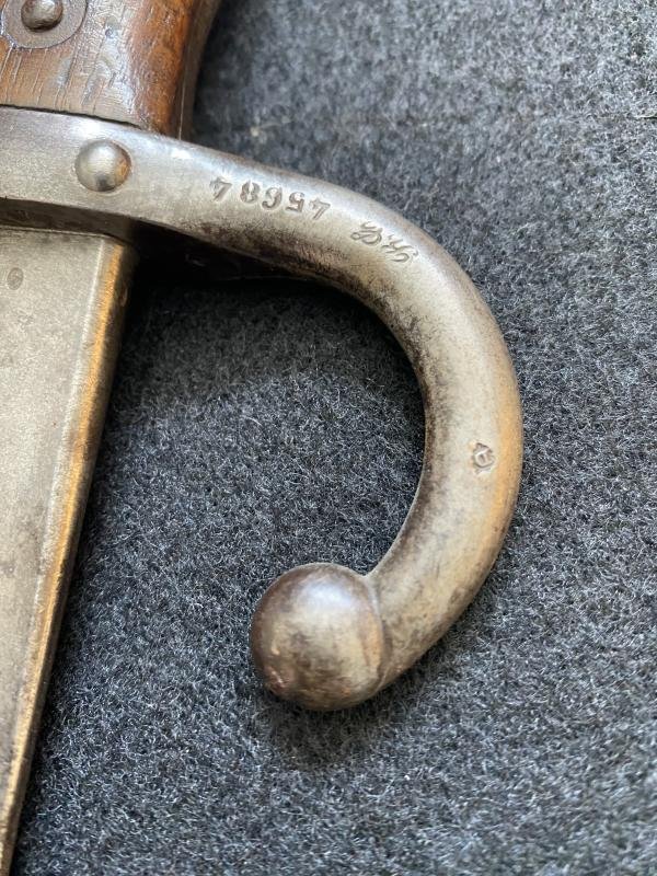 This is a nice 1879 dated French M1874 Gras Sword Bayonet, the wooden grips are in nice condition, the inscription on the spine is nice and clear. Age Restricted Item. Proof of age must be provided. U.K. Sales Only.Check out our YouTube channel below.https://m.youtube.com/results?sp=mAEA&search_query=chase+militaria+