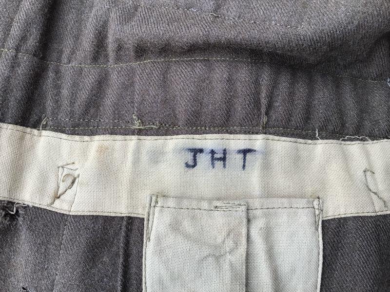 Army other ranks winter four pocket service dress tunic. Pre 1942 pattern with false waist belt. Khaki winter wool with all oxidized AMF buttons, rising sun collar badges and nationality shoulder titles. 2/10th Infantry Battalion colour patches to both shoulders. The manufacturers/date label has been removed. There is an owners initials written in ink on the inside.'JHT'.There is only one serviceman on the WW2 Nominal Roll that has the same initials JHT and served in the 2/10th Battalion.Some areas of mothing but overall a a good example showing both age and service wear.