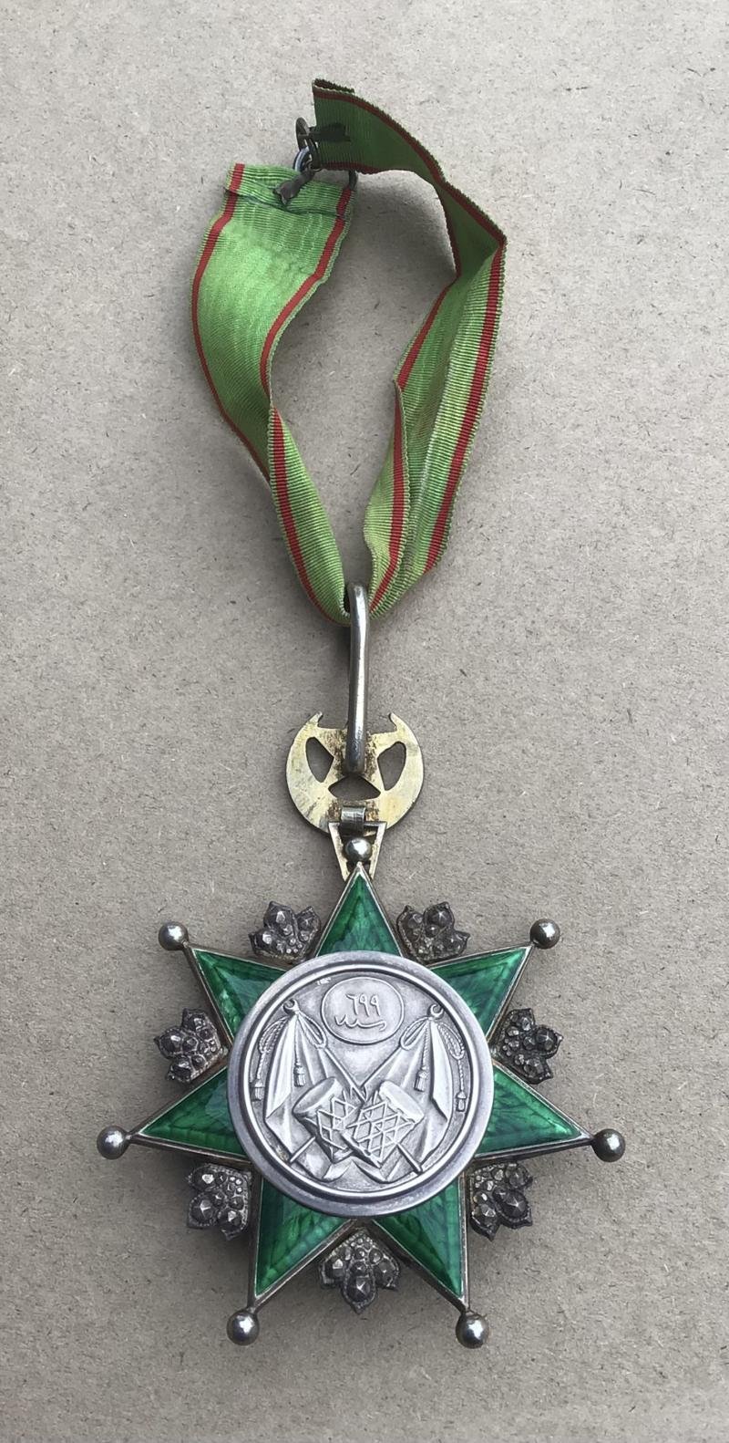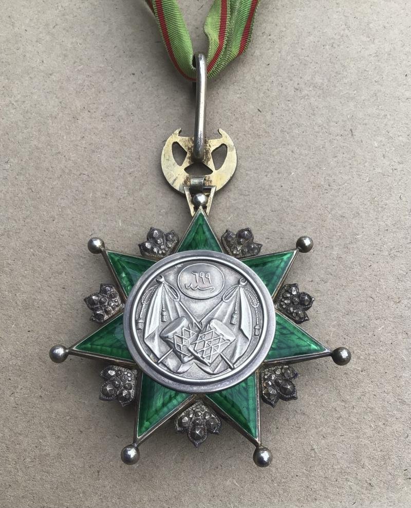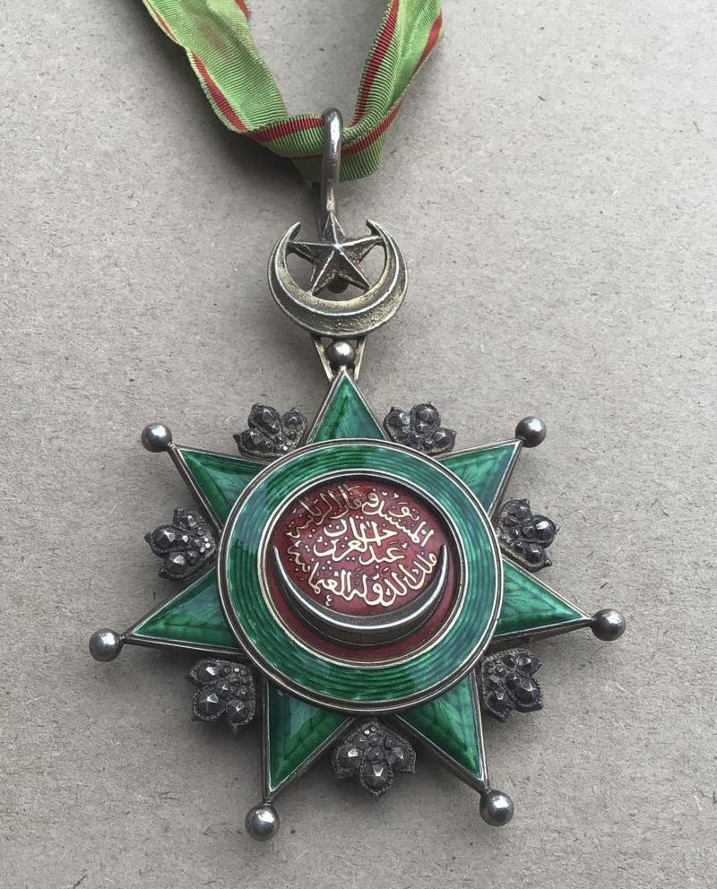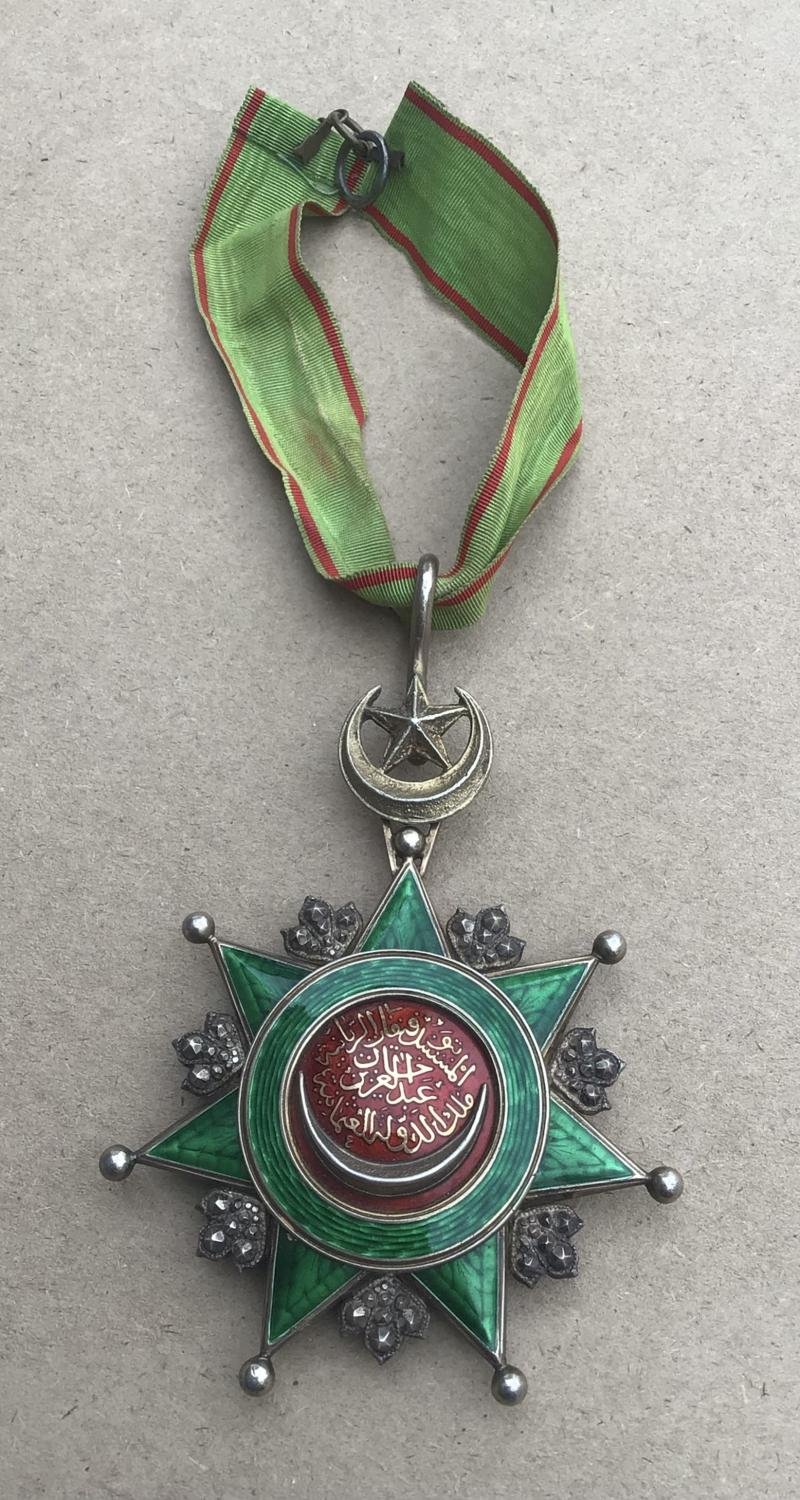 A excellent example Commanders Neck Badge in silver gilt with red and green enamels, Approx 65mm x65mm. With a small piece of original ribbon and loops for attaching under the collar.