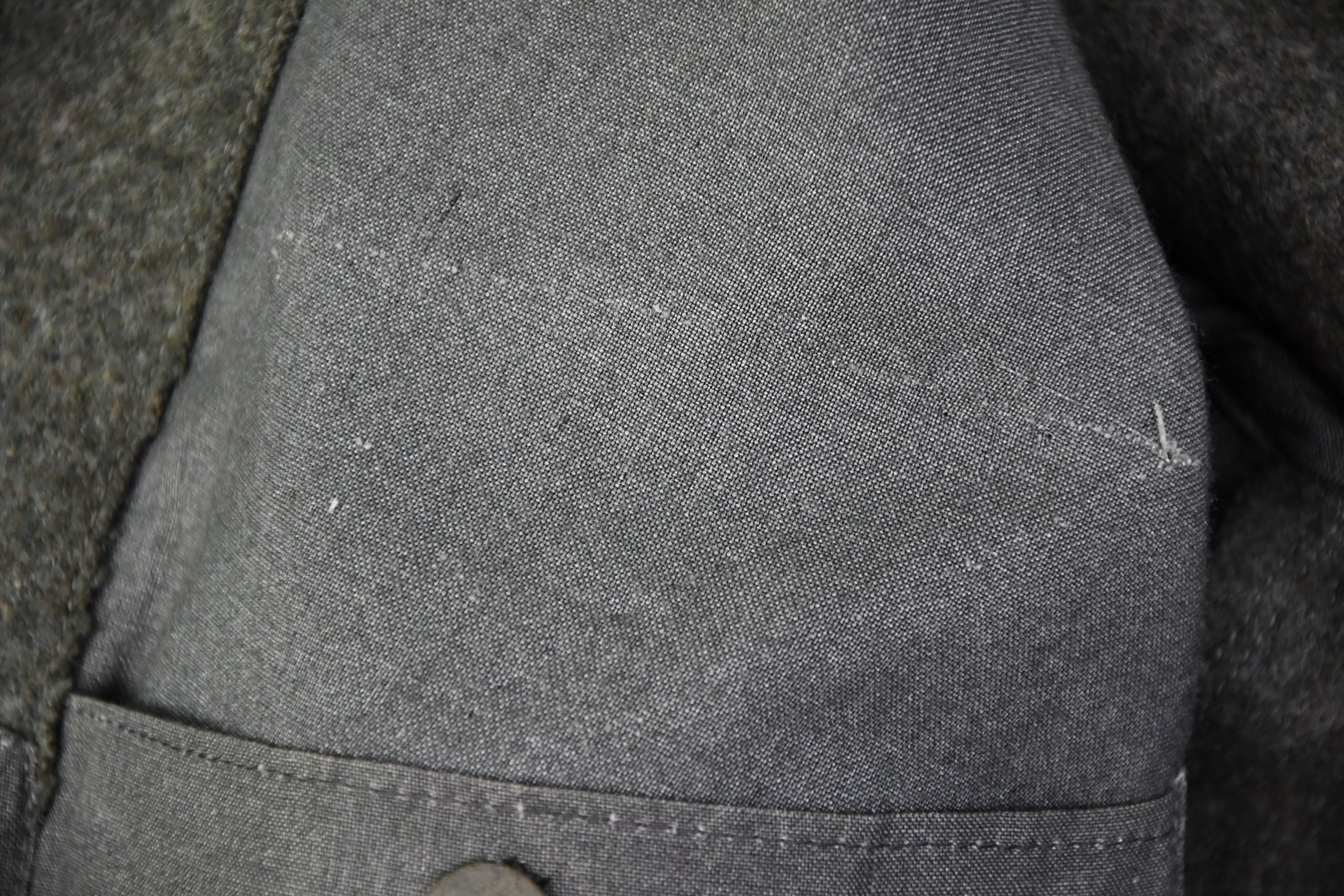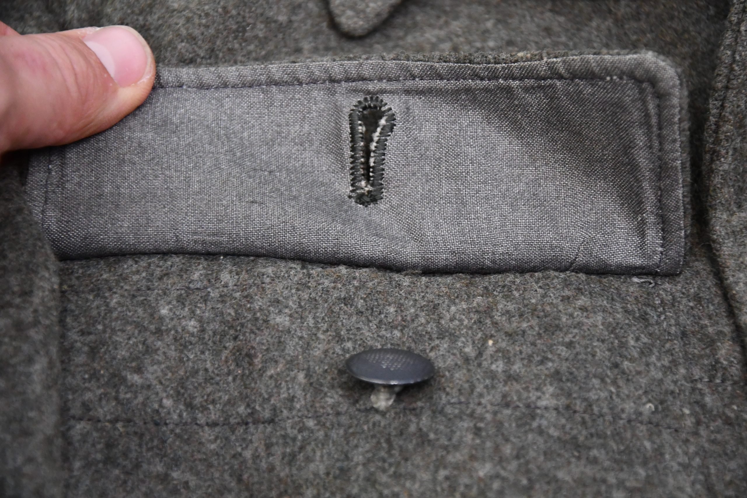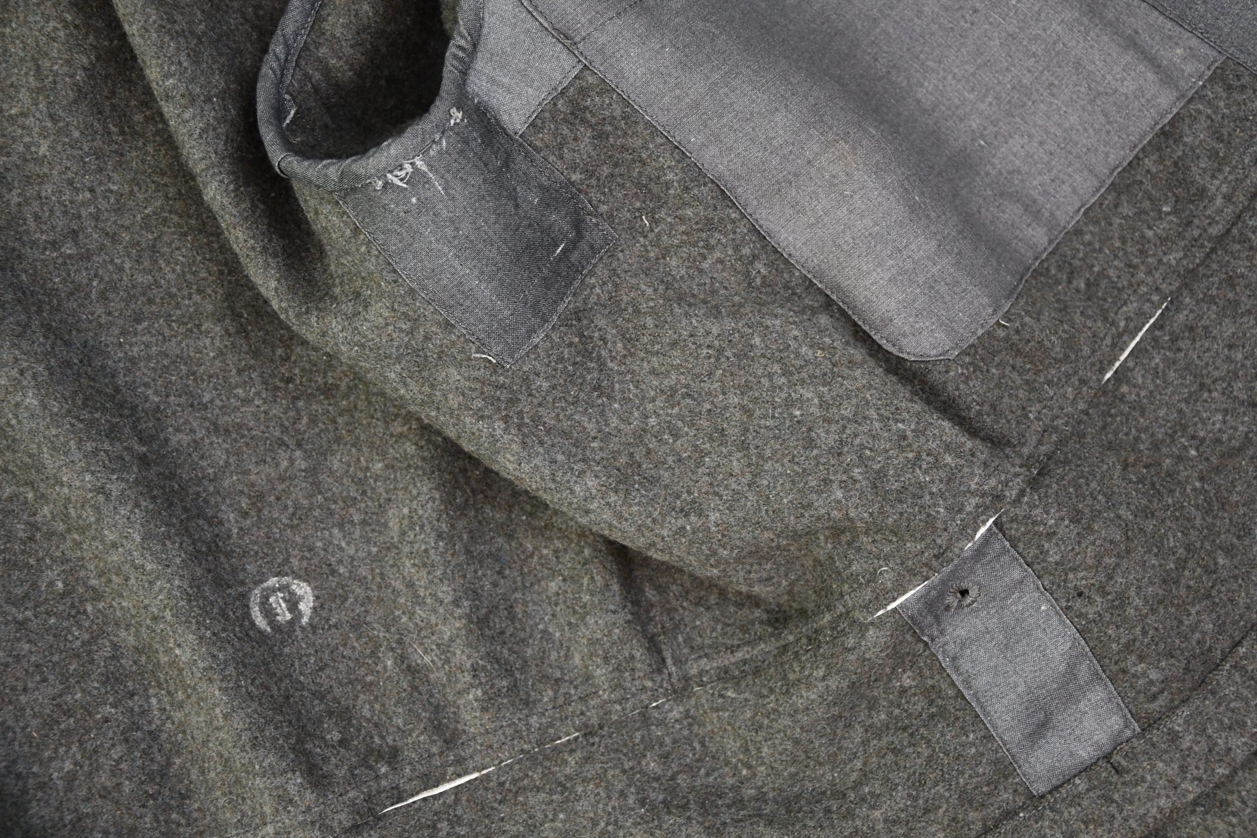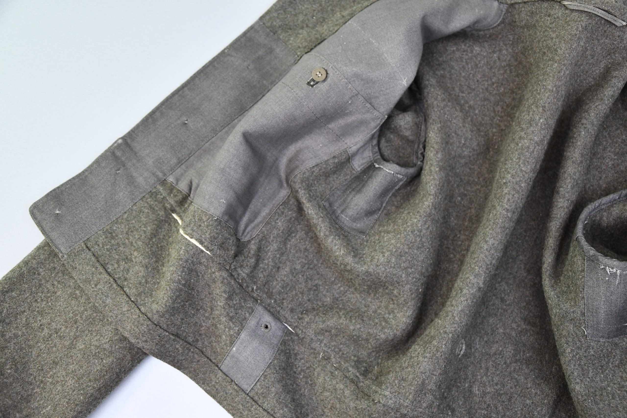 Very nice minimal worn M1944 pattern late war feldbluse. Insignia are removed, probably in captivity but leave a clear print. An excellent restoration project! Complete with beautiful grey liner, nicely size and maker marked with RBNr. 0/0850/0382. Dated 1944 (M44). The wool is in very good condition, shows minimal wear. Voud of damages or repairs.
