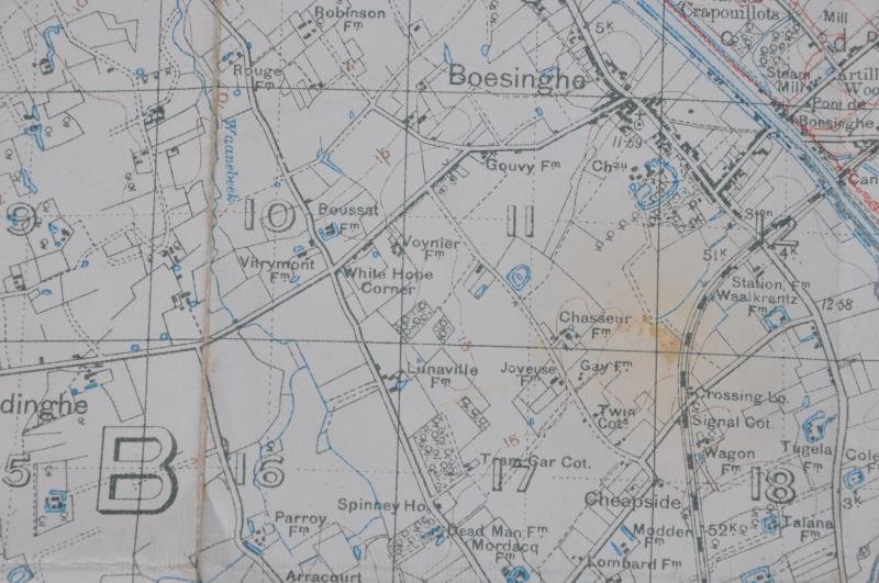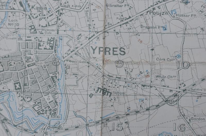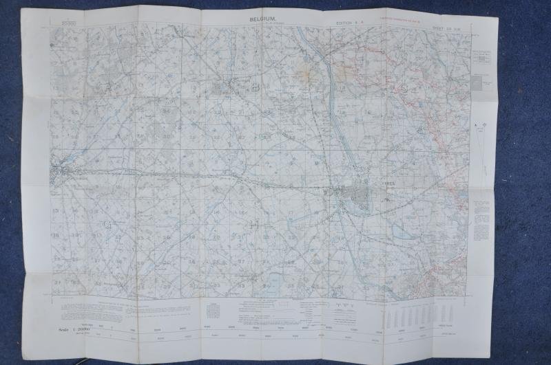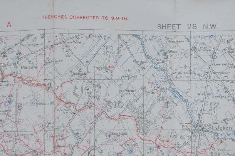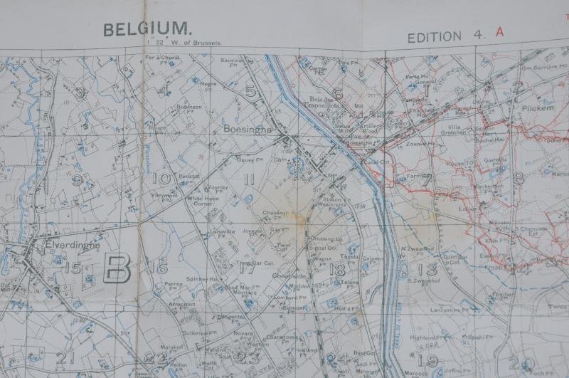 A 'Trenches Up to 1916' dated Map of Belgium including areas such as Ypres & Boezinghe .